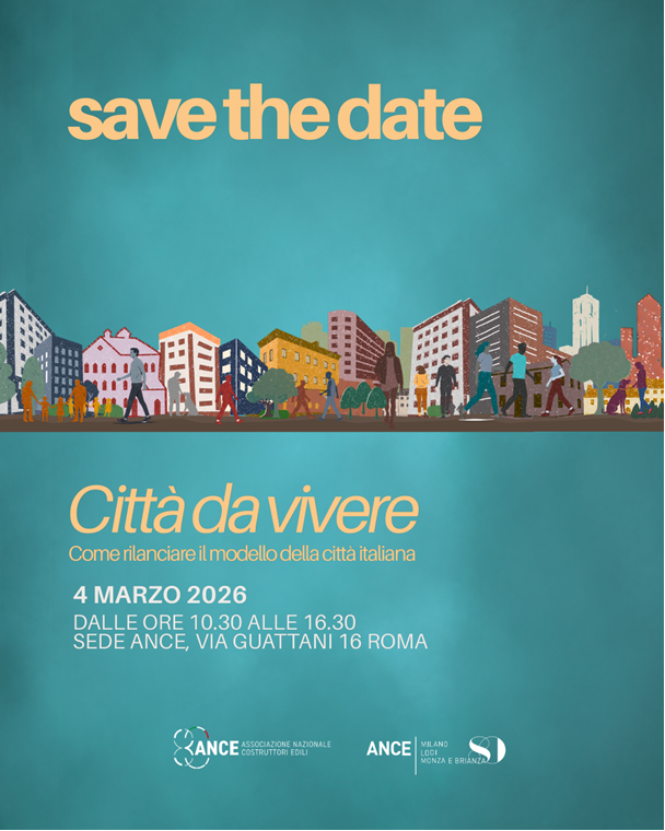 Si terrà mercoledì 4 marzo 2026, dalle ore 10.30 alle ore 16.30, il convegno dal titolo ”Città da vivere – Come rilanciare il modello della città italiana”, organizzato da Ance in collaborazione con Assimpredil Ance.