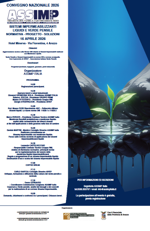 Il 16 aprile si terrà il Convegno Assimp dal titolo "Sistemi Impermeabilizzanti liquidi e verde pensile" presso l'Hotel Minerva ad Arezzo.
