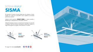 Per garantire la massima sicurezza degli spazi che abitiamo è fondamentale che i sistemi per controsoffitti a secco rispettino le più elevate performance strutturali. In caso di evento sismico, i controsoffitti devono resistere all’azione sismica e agli spostamenti della struttura a cui sono vincolati. Knauf, sempre all’avanguardia delle soluzioni tecniche grazie alla sua spinta continua verso l’innovazione ha messo a punto Knauf Sisma un sistema versatile e flessibile per la realizzazione di controsoffitti antisismici continui. La flessibilità è data dal fatto che utilizzando gli stessi accessori e variando solo la tipologia di controventi (standard oppure Nonius) si ottengono due soluzioni tecnologiche, pensate per adattarsi al meglio alle esigenze di progetto e alle operazioni di cantiere: Knauf Sisma e Knauf Sisma Plus.