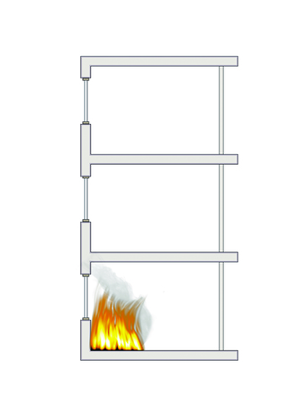 Quando gli incendi si sviluppano all’interno degli edifici il più delle volte nel loro propagarsi questi si estendono alle facciate. Infatti, dopo aver provocato la rottura e le conseguenti aperture delle superfici finestrate, le fiamme fuoriescono propagandosi ai locali superiori o adiacenti a causa dei flussi termici indotti lungo le facciate.
