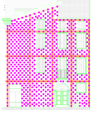 I sistemi FRCM ben si adattano ad incrementare la resistenza sia a pressoflessione che a taglio di maschi murari e delle fasce di piano. Si è optato per un intervento diffuso in facciata mediante rete bidirezionale in fibra di basalto B-NET 450 BA avente grammatura pari a 450 g/m2 annegata in una malta a base calce idraulica LIMECRETE di classe M15 secondo la norma EN 998-2.
