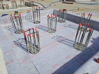 Il fondo scavo, presentando un livello di acqua di falda di 2 m, ha richiesto la creazione di un’impermeabilizzazione continua per tutte le strutture interrate. Per sostenere i successivi carichi, conferendo portanza al terreno, è stata realizzata una serie importante di pali in cls sotto i plinti dei pilastri.