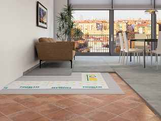 Sonic Comfort Glue: isolante acustico a basso spessore con funzione desolidarizzante per applicazioni sottopavimento o sottomassetto a basso spessore, compatibile anche con pavimenti radianti.