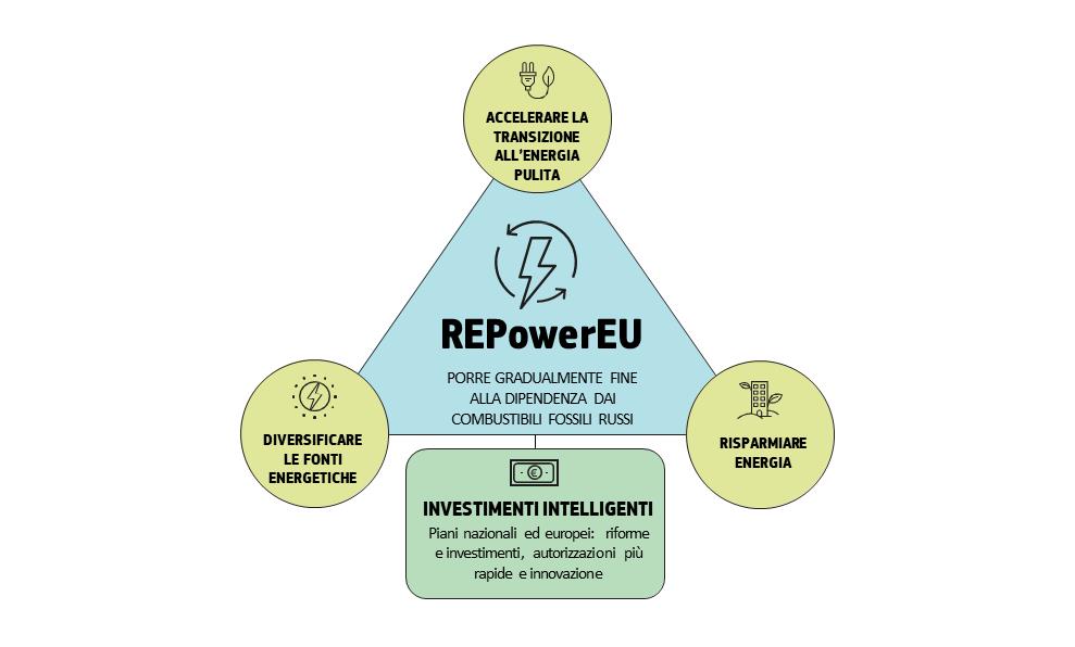 Il Piano, presentato dalla Commissione europea per far fronte alle difficoltà e al terremoto del mercato energetico mondiale, si basa su quattro pilastri fondamentali: il risparmio energetico, la diversificazione dell’approvvigionamento, la sostituzione dei combustibili fossili con le fonti rinnovabili, la combinazione di investimenti e riforme in modo strategico e mirato. Le misure economiche integrative prevedono 225 miliardi di prestiti (stimati) non impiegati del Next Generation EU, che potrebbero essere redistribuiti ed a cui vanno ad aggiungersi ulteriori sovvenzioni del fondo di ripresa e resilienza pari a 20 miliardi di euro. Le fonti di tale finanziamento saranno gestite tramite il Fondo per l'innovazione (60%) e dal sistema di scambio delle quote ETS (40%). Sul fronte nazionale bisogna, però, sottolineare che avendo l’Italia già utilizzato tutta la quota dei contributi a fondo perduto (122 miliardi di euro), attraverso i prestiti resi disponibili dal dispositivo di ripresa e resilienza, la quota dei fondi REPowerEU a disposizione ammonta a 2,7 miliardi di euro, ai quali si può aggiungere fino al 7,5% dei capitali relativi alla programmazione 2021-2027 della politica di coesione.
