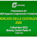 6 dicembre 2023Il mercato delle costruzioni 2024Presentato il XXXV Rapporto Congiunturale e Previsionale CRESME. Contrazione delle riqualificazioni, opere pubbliche di fronte alla sfida delle realizzazioni forte aumento del contenzioso.