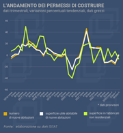 ISTAT - permessi di costruire 2023L'ISTAT ha pubblicato i dati del terzo trimestre sui permessi di costruire. Per il numero di abitazioni autorizzate il dato congiunturale è fermo dopo un +4,2% nel primo trimestre e un -4,9% nel secondo, mentre in termini di superficie abitabile il terzo trimestre è +0,3% dopo aver fatto +5,2% e -5,1%. Il dato tendenziale è a -0,9% per il numero di abitazioni e a +0,4% per la superficie abitabile. Andamento oscillatorio anche nel settore non residenziale, dove nel terzo trimestre si registra un -13,9% dopo due periodi positivi di +0,4% e +10,2%. Il tendenziale a -6,6% si mangia la crescita annuale del primo semestre dopo quella del 2022 (+2,8%). -