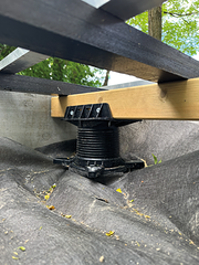 Un patio esterno eco-friendlyLa realizzazione di un pavimento sopraelevato con il supporto ecologico Deckofix di Impertek a Casa dei Racconti. -