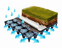 Drainroof risolve i problemi legati all’assenza o al ristagno dell’acqua; grazie alla sua conformazione, infatti, autoregola il drenaggio, l’irrigazione e l’aerazione. Il lato superiore forato del modulo consente all’acqua di defluire in modo da garantire la massima dispersione nel minor tempo, mentre le zone di accumulo generate dalla sua geometria vanno a garantire il giusto grado di umidità del terreno.