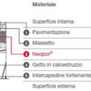 - Caratteristiche tecnico prestazionali: L’isolamento con lastre in Neopor® del solaio contro terra minimizza le dispersioni di calore verso le fondazioni e il terreno sottostante. Questo sistema ha una posa molto semplice poichè le lastre sono molto leggere e possono essere sagomate in loco con precisione e senza formazione di polveri e residui fibrosi durante il taglio.