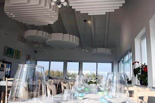La collaborazione fra progettazione, produzione, distribuzione e imprese specializzate, ognuna impegnata per raggiungere il traguardo comune della soddisfazione del cliente. È il caso dell’Agriturismo Frontemare di Cologna Spiaggia (TE) la cui proprietà doveva risolvere due precisi problemi: effettuare un restyling della sala da pranzo ed eliminare il riverbero acustico proprio di un locale frequentato da numerose persone come è quella di un ristorante, senza però appesantire l’ambiente con i rivestimenti continui tipici degli interventi di correzione acustica.