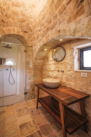 I materiali scelti ricalcano la storia che ha profondamente caratterizzato il territorio della Valle d’Itria, rendendolo unico al mondo e appartengono alla tradizione architettonica pugliese, quali la pietra, la calce, il ferro ed il legno, trattati seguendo l’identità storica del borgo.