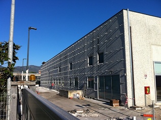 L’intervento è consistito nell’installazione a secco di una parete di rivestimento perimetrale sulla superficie verticale esterna di un capannone ad uso commerciale di proprietà della società Galileo SpA, che ospita gli uffici della società e uno spazio espositivo.
