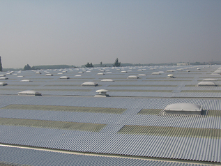 In questa applicazione sono stati utilizzati dei basamenti in vetroresina composti da una parte piana, avente la stessa sagoma grecata delle lastre di copertura, consentendone l’inserimento senza dovere realizzare complesse opere di lattoneria e senza dover stravolgere la copertura stessa. Questi basamenti sagomati, con base di appoggio isolata, sono realizzati in modo da poter ricevere i diversi tipi di apparecchi con i relativi carichi sia statici che dinamici. Tale tipologia di montaggio ha permesso di realizzare l’intervento in tempi brevi con la massima garanzia di tenuta.