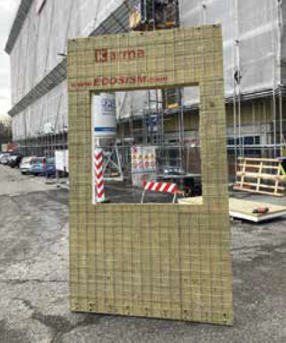Una volta posizionato correttamente il modulo, un elemento standard ha dimensioni 1.20 x 3.30 m, l’operatore dovrà semplicemente praticare i fori lungo i cordoli di piano, nella quantità e nella posizione indicate dai pre-fori realizzati in stabilimento, e andare ad ancorare il tutto con delle viti da calcestruzzo certificate sismiche, fornite a corredo da Ecosism, nella quantità e nella tipologia indicate dal progettista strutturale: con questo sistema di fissaggio meccanico, appositamente studiato, in pochi minuti, con Karma, è possibile isolare energeticamente e garantire l’antiribaltamento delle tamponature su porzioni di circa 4 mq di facciata.