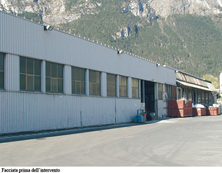 Per la facciata, si è optato per l’alluminio verniciato opaco in una tonalità chiara, materiale di ampio utilizzo anche in ambienti caratterizzati da vento e condizioni atmosferiche particolari, come è il caso di Riva del Garda. In particolare, è stato utilizzato il laminato d’alluminio preverniciato FF2 prodotto da Novelis, che ha conferitoai pannelli per l’involucro considerevoli qualità prestazionali ed estetiche. Le eccellenti caratteristiche meccaniche e la resistenza della vernice di questo materiale hanno agevolato la produzione dei componenti e consentito la loro perfetta planarità, in sintonia con l’esito architettonico desiderato. Al fine di differenziare la percezione dei rapporti tra pieni e vuoti e “muovere” la composizione dei volumi, sono state progettate delle partiture con pannelli di diverso modulo, sempre lineare, ma con differente altezza e colore. Il ritmo delle facciate, realizzate con i componenti a cassetta in alluminio, è dettato dalle colonne verticali in legno lamellare, che fungono anche da strutture di sostegno. In questa realizzazione l’alluminio è stato accostato al legno, scelto anche come richiamo alla cellulosa: materia prima utilizzata nella produzione della carta. Le aperture finestrate esistenti, mantenute per non alterare il rapporto aero-illuminante, sono state schermate in un gioco di luci e ombre, ottenuto grazie ai pannelli in brise soleil, con doghe in alluminio orizzontali. Gli angoli della costruzione sono esaltati con dei volumi ottenuti, con applicazione di pannelli di forma trapezoidale in alluminio laminato, dalle stesse caratteristiche della facciata, che riportano il logo delle Cartiere del Garda .
