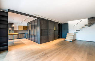 Le porte Scrigno Essential, oltre ad essere apprezzate per la loro essenzialità e funzionalità, sono selezionate per la qualità e per la loro intrinseca poliedricità minimalista, che le rende il tocco di classe, la finitura di un’architettura che si esprime anche grazie alla silenziosa eleganza degli elementi che lo completano. Spicca la soluzione Essential Scorrevole in vetro che, con la sua presenza impalpabile, incarna perfettamente l'aspetto concettuale dell'appartamento e lo esalta, comprendendo il gioco del contrasto fra volumi e materiali. Il vetro si oppone ironicamente con le sue trasparenze al ferro, crudo e duro e al legno, nobile e duttile, a conferma dell'unicità e irripetibilità di ogni singolo dettaglio. Personalizzata nelle dimensioni, la soluzione si distingue per un'elegante semplicità su misura.