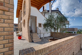 Il corpo di fabbrica esistente, dalla forma pressoché lineare e regolare è stata arricchita da un importante e suggestivo frontespizio dall’estetica curiosa e sorprendente che ospita il portico al piano terra e ampie terrazze coperte al piano superiore.
