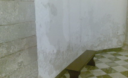 Gli intonaci sono stati risanati con Coprox®, un intonaco rasante in forma di polvere bianca, monocomponente inorganico al 100%, con azione, traspirante, deumidificante, risanante e protettiva