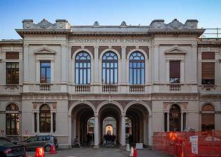 Il complesso edilizio della Facoltà di Ingegneria di Padova sorge all’interno di un vasto isolato ed ospita oggi uffici amministrativi dipartimentali, biblioteche, laboratori scientifici, uffici dei docenti e aule didattiche. L’edificio fu costruito sulla base di un progetto elaborato, in più fasi, da Daniele Donghi a partire dal 1910. Dopo l’avvio, i cantieri furono presto interrotti nel corso della prima guerra mondiale, mentre le strutture completate furono, nel 1917, in parte occupate dai militari. Alla fine del conflitto furono restituite all’università. I lavori di costruzione ripresero quindi dopo il 1919 e proseguirono sino al 1933 circa, con il completamento di tutte le strutture previste nel progetto elaborato prima della guerra. Stravolgimenti e integrazioni al progetto iniziale iniziarono ancora in fase di cantiere per le esigenze degli istituti di Idraulica, di Meccanica Applicata e di Elettrotecnica.