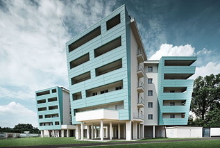 Dietro le facciate PREFA in verde opale del complesso residenziale progettato da Fabio Buttigliero e Filippo Cornero di GAP Studio si articolano gli spazi abitativi di 80 appartamenti con una superficie totale di circa 20.000m2. Il complesso architettonico sviluppato su 4 blocchi si caratterizza per il suo stile moderno ed elegante, immerso in un paesaggio naturale soggetto a tutela ambientale.
