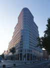 La facciata, più leggera, riduce il carico statico quindi anche i costi di realizzazione. L'alto grado di preassemblaggio dei componenti e il lavoro di installazione hanno permesso di fissare tra 250 e 300 metri quadrati di lastre in pietra la settimana, nonostante gli spazi limitati del cantiere. La forma e l'altezza dell'edificio, oltre 60 metri, hanno richiesto una perizia tecnica sul carico del vento, considerando nella progettazione strutturale una depressione del vento di 2.400 N/m2 e una pressione del vento di 1.300 N/m2. La pietra utilizzata per la facciata si è rivelata molto dura ma altrettanto porosa, con inclusioni argillose. Mantenendo i livelli di sicurezza richiesti, le 1.500 lastre di riempimento (40 mm) e le 4.500 lastre del parapetto (75 mm) sono state fissate alla sottostruttura. L'esposizione al sole comporta fluttuazioni della temperatura sulla superficie della facciata sino a 50°C, generando carichi a compressione nell'estradosso delle lastre. In questo gli ancoranti utilizzati permettono le tensioni derivanti dalla deformazione termica.