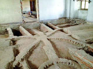 • realizzazione di “controarchi” estradossali con malta pozzolanica Rurewall PVA-TX in alcune sale dove è previsto un sensibile aumento dei carichi accidentali rispetto alle condizioni originarie di utilizzo, tale sistema ha permesso di evitare invasivi interventi di “chiodature” sulle volte esistenti, ciò grazie alla elevata duttilità post frattura del prodotto in oggetto. La scelta delle malte e del sistema composito di rinforzo Ruredil, è stata effettuata tenendo presente l’esigenza di garantire, oltre alle necessarie prestazioni meccaniche-di resistenza, la necessaria durabilità dell’intervento al variare delle condizioni climatiche nonché la necessaria e continua traspirabilità delle zone oggetto di intervento al fine di garantire la conservazione dell’apparato decorativo sottostante senza pregiudicarne la fruibilità negli anni a venire.