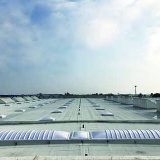 La copertura del fabbricato si estende per circa 20.000 m2 ed è caratterizzata da una struttura in elementi prefabbricati in calcestruzzo, sulla quale sono posizionati una serie di shed alternati a lucernari per aumentare l’illuminazione interna.