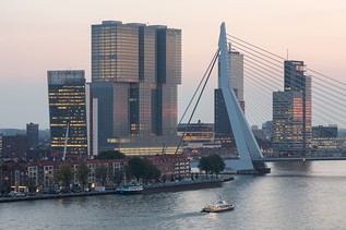 In piedi a 150 metri di altezza e con una larghezza di poco meno di 100 metri, l'ensemble grattacielo sul Wilhelminapier lungo la Mosa a Rotterdam è costituito da tre torri affiancate e collegate tra loro da una massiccia base di sei piani.