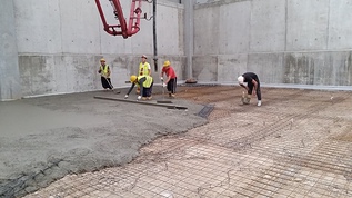 La pavimentazione industriale presso la nuova sede produttiva, circa 10.000 m2 di superficie coperta, è stata realizzata con un calcestruzzo fibrorinforzato con fibre strutturali Ruredil X Fiber 54. Per la definizione della soluzione da adottare si è dovuto tenere in considerazioni due aspetti molto determinati: il primo dovuto al carico massimo gravante sulla futura pavimentazione costituito da bobine (coils) di acciaio inox le quali scaricano sulla pavimentazione circa 21.000 kg su due travette in legno da 20 cm di larghezza per 170 cm di lunghezza; il secondo dovuto alla presenza di riscaldamento a pavimento radiante costituito da un pannello isolante bugnato per il fissaggio dei tubi.