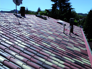 Un intervento di sostituzione del manto di copertura di un edificio residenziale. Nato dall'esigenza di eliminare le cause di infiltrazioni dovute al degrado delle tegole esistenti, ha nel contempo consentito il miglioramento delle prestazioni energetiche dell'edificio. In sostituzione sono stati posati i pannelli Isocoppo, in alluminio accoppiato a poliuretano espanso, posati su una nuova listellatura in legno d'abete