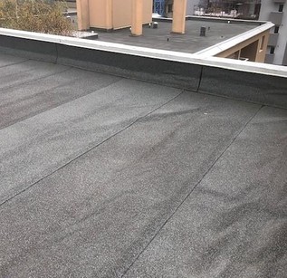 La stratigrafia esistente è stata regolarizzata tramite taglio e nuova sfiammatura di ondulazioni e grinze presenti per ripristinarne l’adesione al supporto. I risvolti verticali esistenti di perimetro e corpi emergenti sono stati rimossi e predisposti per essere idonei a ricevere il nuovo sistema impermeabile; sono stati quindi predisposti i nuovi pluviali di scarico e regolarizzati i giunti strutturali.