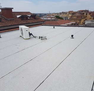 Si è proceduto innanzitutto con la rimozione dello strato impermeabile esistente da risvolti verticali di perimetro e corpi emergenti e laddove distaccato dal supporto.