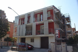 Per quanto riguarda il controllo della radiazione solare sulle superfici vetrate, sono stati realizzati dei frangisole in corrispondenza dei parapetti dei balconi: in particolare la mobilità di questi frangisole, permette di massimizzare gli apporti solari gratuiti nella stagione invernale e di abbatterli nella stagione estiva.