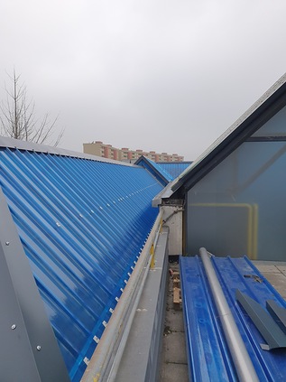 Le nuove lastre di vetroresina Elyplast sono state scelte nella massima grammatura disponibile (2,3 kg/mq) e con trattamento superficiale anti UV. Inoltre la durata trentennale della copertura, rimasta in esercizio senza particolari problematiche, se non il naturale invecchiamento estetico, che non ne ha in alcun modo alterato la funzionalità, ha confermato e superato le aspettative di vita del prodotto.
