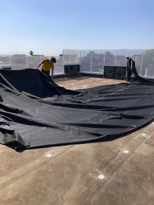 Prima di impermeabilizzare con l’EPDM, sono state verificate le originarie pendenze per il regolare deflusso delle acque piovane. In seguito, si è proceduto alla posa di Hertalan in teli di grandi dimensioni, con sistema a fissaggio meccanico.