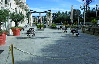 L’ingresso principale del Grand hotel di Rimini, caratterizzato da un’ampia area di accoglienza per gli ospiti che da accesso all’elegante scalinata dell’ingresso, sovrasta una serie di ampi spazi sotterranei occupati dai garage a servizio della struttura. In corrispondenza di tali aree interrate sono state rilevate ampie infiltrazioni d’acqua provenienti dal piazzale sovrastante che nel tempo avrebbero potuto ingenerare danni alla copertura dei parcheggi, rendendo perciò necessario un intervento atto a ripristinare la tenuta all’acqua della superficie.