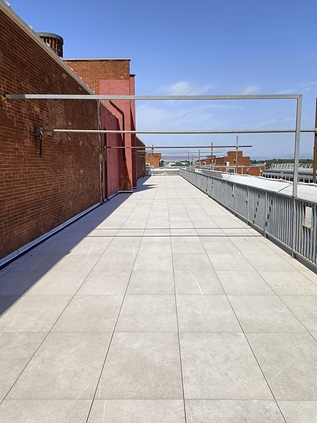 Per tanto, i lavori di rifacimento sono stati condivisi e approvati dall’ente, che li ha ritenuti tecnicamente idonei, con l’unica prescrizione della successiva finitura con una pavimentazione galleggiante in ceramica, così da uniformare la vista dall’alto dell’intero complesso. La posa in opera dell’EPDM Prima di impermeabilizzare con l’EPDM, sono stati rimossi gli strati pre-esistenti di pavimentazione e vecchia guaina ed è stato realizzato un massetto per generare le nuove pendenze per il deflusso delle acque piovane e livellare la copertura, in modo da poter accogliere il nuovo strato impermeabilizzante. In seguito, si è proceduto alla posa di Hertalan in teli di grandi dimensioni, con sistema a fissaggio meccanico. Per coprire l’intera superficie, date le diverse metrature dei 5 terrazzi, abbiamo utilizzato:
