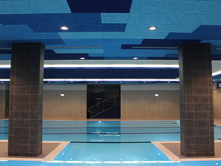 Una nuova piscina in centro a Milano diventa l’occasione per riproporre sul soffitto il movimento visivo dell’acqua e i suoi colori, grazie a pannelli fonoassorbenti dalle grandi caratteristiche prestazionali.