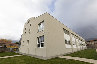 Il nuovo plesso scolastico si trova nel centro storico della città, si sviluppa su due livelli ed è circondato da un’ampia area a verde.