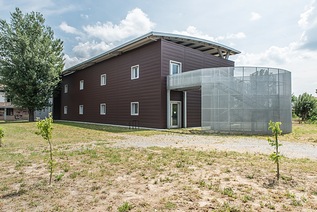 Particolarmente efficace è il rivestimento della facciata con doghe metalliche Alu-skin di Alubel spa, che dona all’edificio un carattere moderno e ben riconoscibile.