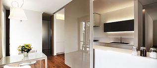 Connotate da un carattere elegante e discreto, le porte dell’appartamento si trasformano in “confini scorrevoli”, preservando al contempo l’omogeneità spaziale caratteristica del loft.