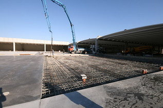 I pavimenti in calcestruzzo sono stati collegati tra loro con dei giunti prefabbricati in acciaio, che hanno consentito di ottenere un comportamento strutturale a piastra unica.