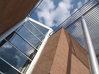 L’edificio risulta quindi non solo formalmente rappresentativo, ma soprattutto esteticamente, grazie alla scelta dei mattoni faccia a vista serie Terca della Wienerberger per la finitura del paramento esterno. I mattoni a mano Terca sono infatti prodotti ancora oggi secondo l’antica tradizione artigianale, ovvero prelevando il pane di argilla dal cumulo e disponendolo a pressione all'interno di uno stampo preventivamente spolverato di sabbia; eliminandone poi le eccedenze, lo stampo viene capovolto per farne uscire il mattone crudo, apparentemente rugoso, irregolare e con bordi spesso ineguali; in più grazie alla miscelazione di argille diverse ed a varie modalità di cottura, i mattoni possiedono affascinanti sfumature di colore.