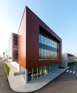 Il primo esempio in Italia di applicazione della tecnologia fotovoltaica a film sottile in facciata è rappresentato dalla Nuova Sede Schüco Italia.