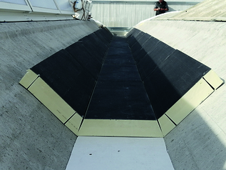 Nel caso dello stabilimento APE Raccorderia al pannello di 120 mm di spessore sono state praticate 10 incisioni, con diverso orientamento, che hanno consentito la conformazione dello strato isolante al profilo del tegolo alare.