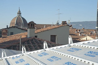 Piazza del Duomo, a Pistoia, rientra di diritto tra le più belle piazze medioevali italiane. Qui sorge il novecentesco edificio sede della Prefettura. Per migliorarne le qualità energetiche si è rinnovata la copertura con un sistema integrato di coibentazione ad alta performance e compatibile con la natura storica dell’edificio.