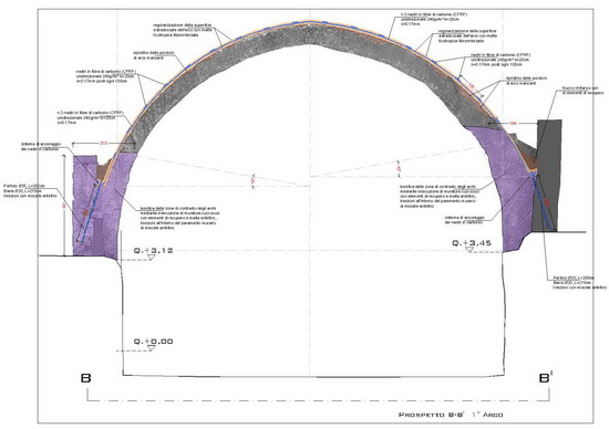 L’intervento strutturale proposto per il consolidamento dei due arconi si pone l’obiettivo di fornire un’azione di presidio che modifichi il meno possibile lo schema statico originale, nello spirito della reversibilità e del rispetto del contesto architettonico attuale.