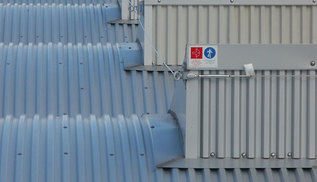 Sopra la struttura in legno lamellare è stato posato un pacchetto di copertura costituito da un isolante in polistirene di spessore 10 cm. con al di sopra le lastre grecate coibentate TEK 28 in alluminio spessore 7/10 m. preverniciato colore bianco/grigio.