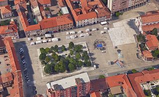La piazza, su cui si affaccia la chiesa cinquecentesca di Sant’Ambrogio, è stata oggetto nel 2003 di una profonda ristrutturazione a opera dell’architetto Dominique Perrault, vincitore di un concorso urbanistico internazionale indetto dal comune nel 1999.