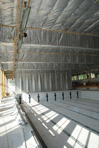 La costante presenza di condensa e di vapori di cloro ha causato negli ultimi venti anni un lento ma progressivo degrado. In primis come assottigliamento e sfibramento nonché inzuppamento di un isolante tradizionale tipicamente utilizzato negli anni ’90 quali fibra di vetro. In secondo luogo, il degrado ha raggiunto il livello tale da rendere necessario un radicale intervento di restauro dei tegoli soggetti a forti carbonatazione e il consequenziale aggiornamento sul profilo termico rispettando non solo la normativa 311 ma ottimizzando gli investimenti portando alla sostituzione di un’impiantistica oramai superata che la progettazione in accordo con la committenza ha deciso di sostituire, dedicando particolare attenzione al risparmio energetico.